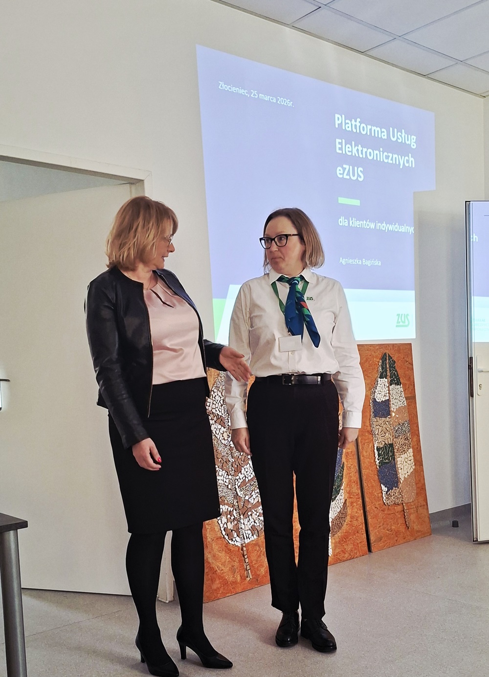 Pod koniec miesiąca odbyło się spotkanie z pracownikiem ZUS-u z Drawska Pomorskiego. Pani Agnieszka Bagińska rzetelnie, w przystępny sposób zapoznała uczestników o możliwościach jakie daje platforma eZUS.