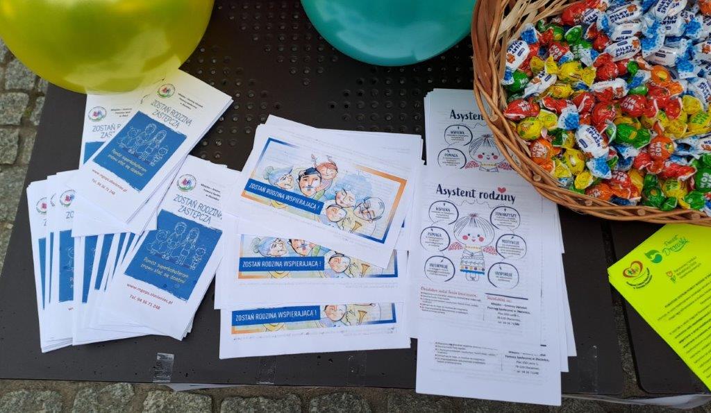 Z tej okazji pracownicy Miejsko-Gminnego Ośrodka Pomocy Społecznej w Złocieńcu wraz z pracownikami Powiatowego Centrum Pomocy Rodziny w Drawsku Pomorskim promowali wartości rodzinne. Mieszkańcy Złocieńca dowiedzieli się w jaki sposób mogą zostać rodziną wspierającą,rodziną zastępczą oraz jak uzyskać wsparcie asystenta rodziny.W tych działaniach ogromną pomoc udzieli policjanci z Komisariatu Policji w Złocieńcu. Nie zabrakło atrakcji dla dzieci ,które nas odwiedziły z Prywatnego Przedszkola Stanisławy Rak-Lisowskiej oraz uczniowie Szkoły Podstawowej nr 1 w Złocieńcu. Dzieci z wielką chęcią wzięły udział w konkursach o tematyce rodziny.Nie zabrakło nagród ,słodyczy i radości.Wszyscy uczestnicy spotkania jednogłośnie potwierdzili, że RODZINA JEST NAJWAŻNIEJSZA!!!