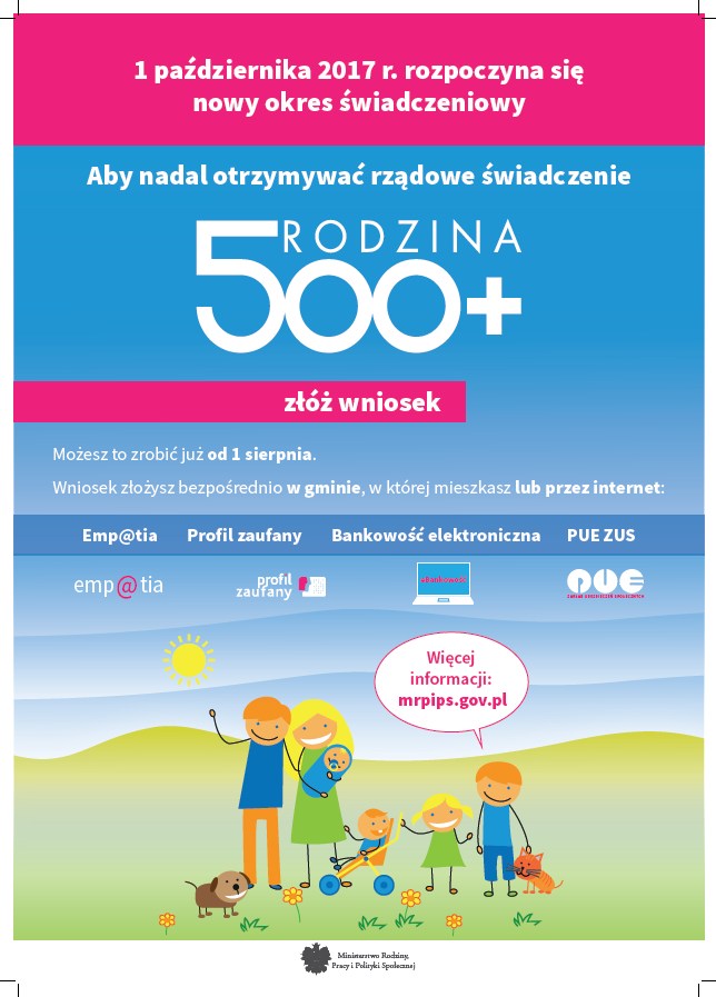 wnioski o ustalenie prawa do świadczeń rodzinnych, świadczeń wychowawczych (500+) oraz świadczeń z funduszu alimentacyjnego