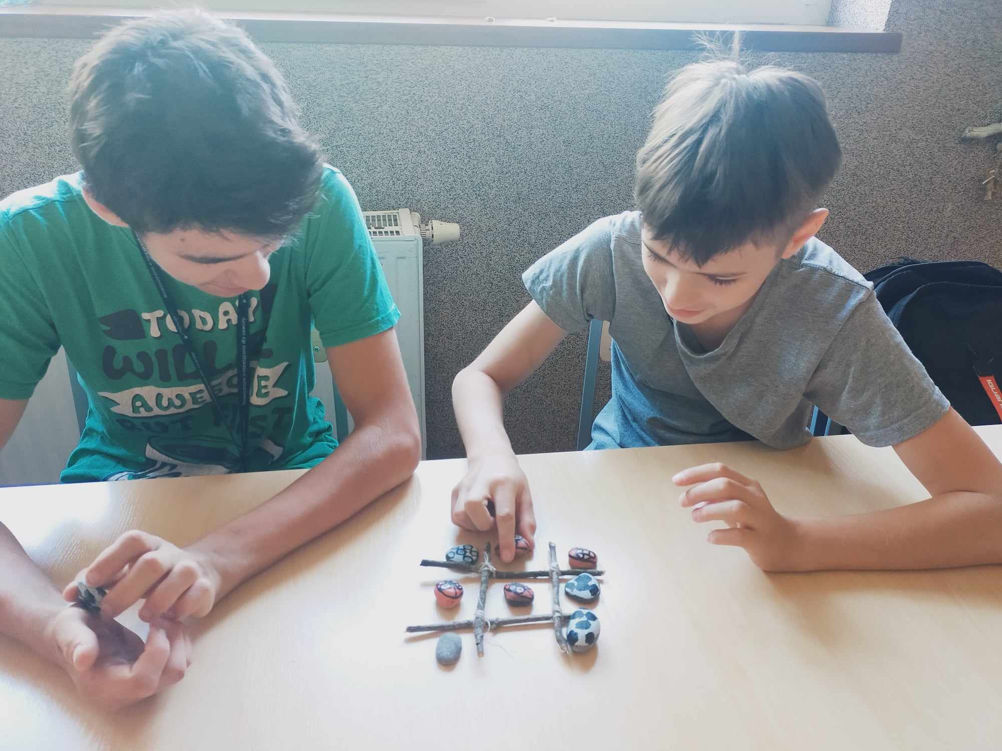 Ponadto z kamyczków i patyczków stworzyliśmy Minionkową grę kieszonkową kółko i krzyżyk. W wolnych chwilach słuchaliśmy gry na pianinie wychowanków naszej placówki.