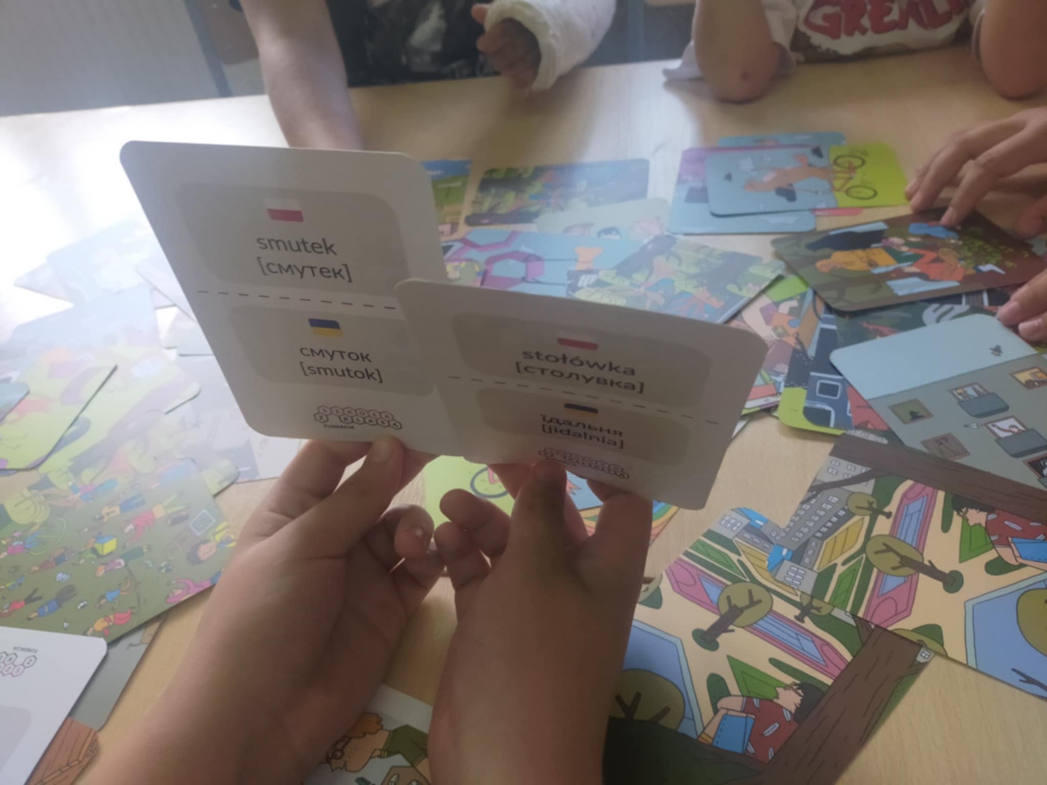 W ramach zajęć edukacyjnych i rozwijających kompetencje językowe odbyły się kalambury językowe, w trakcie których uczestnicy mieli okazję poznać podstawowe słowa i zwroty w języku ukraińskim oraz nauczyć się ich prawidłowej wymowy.