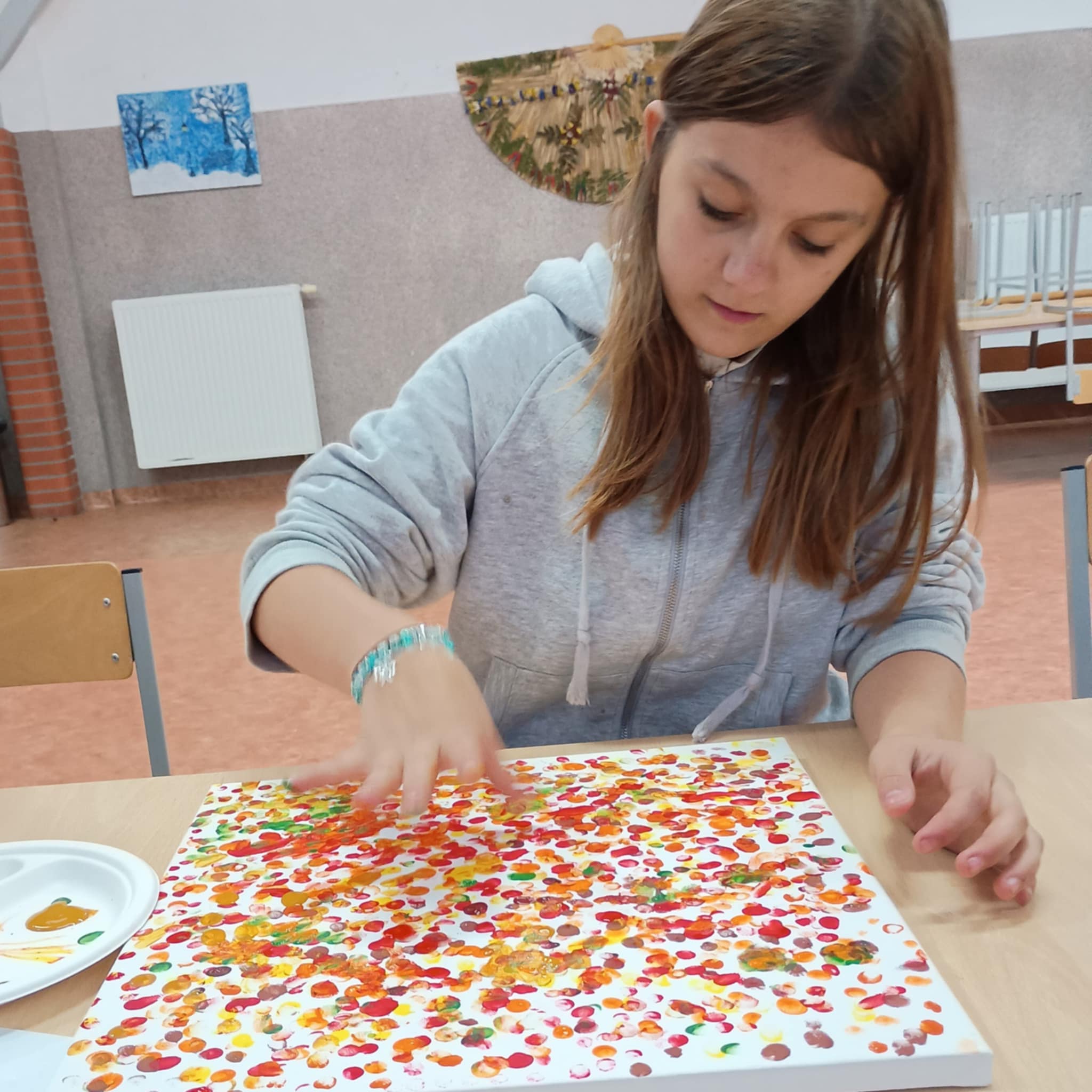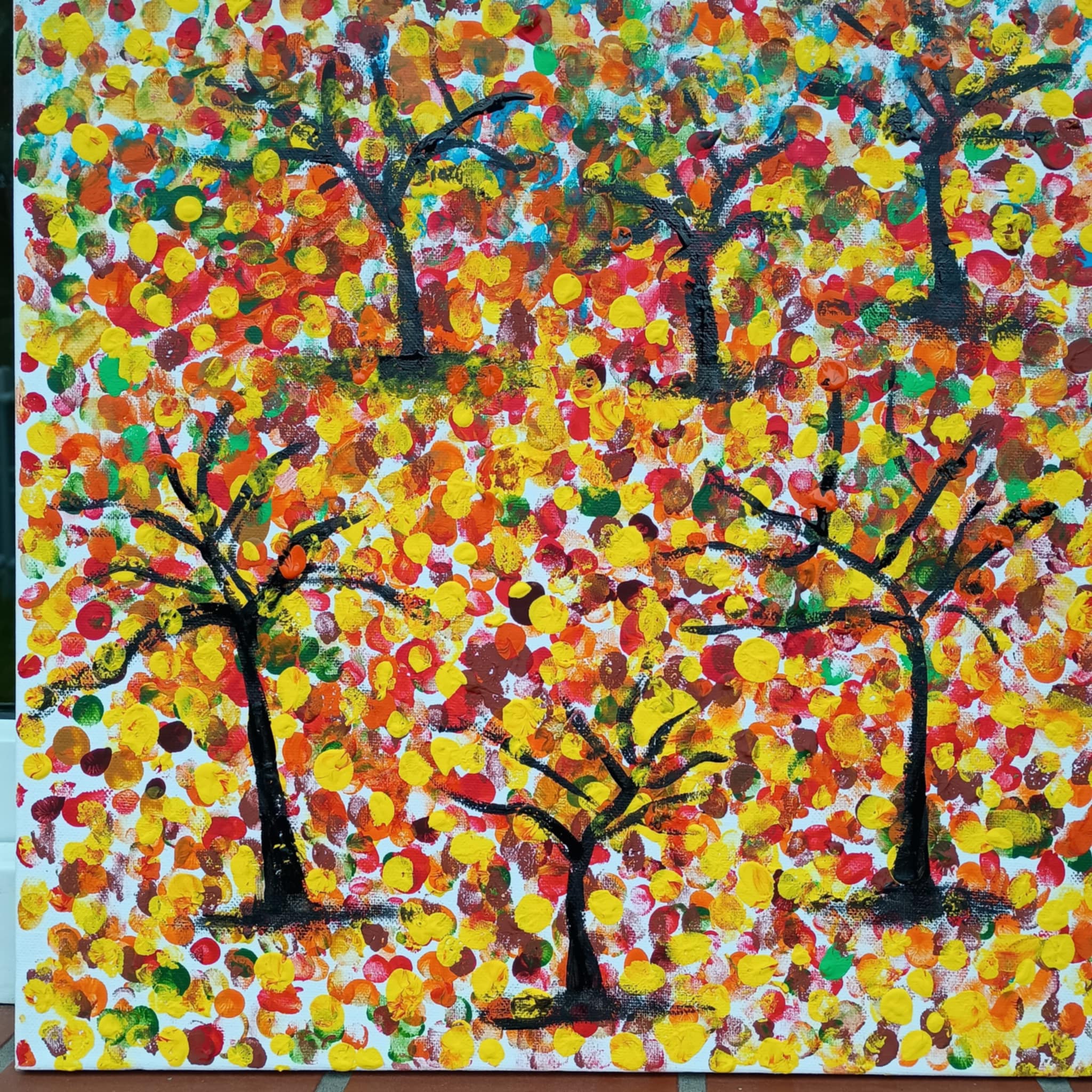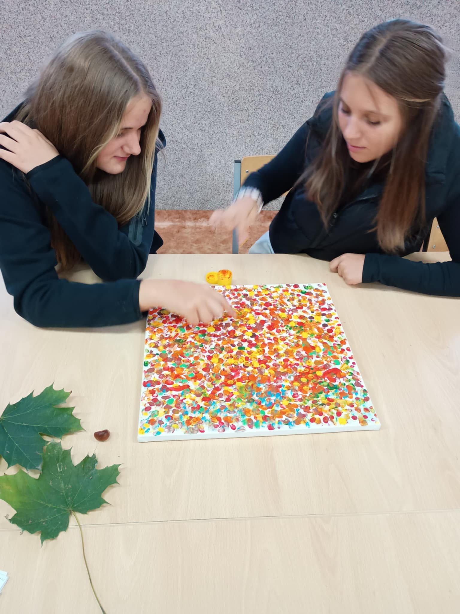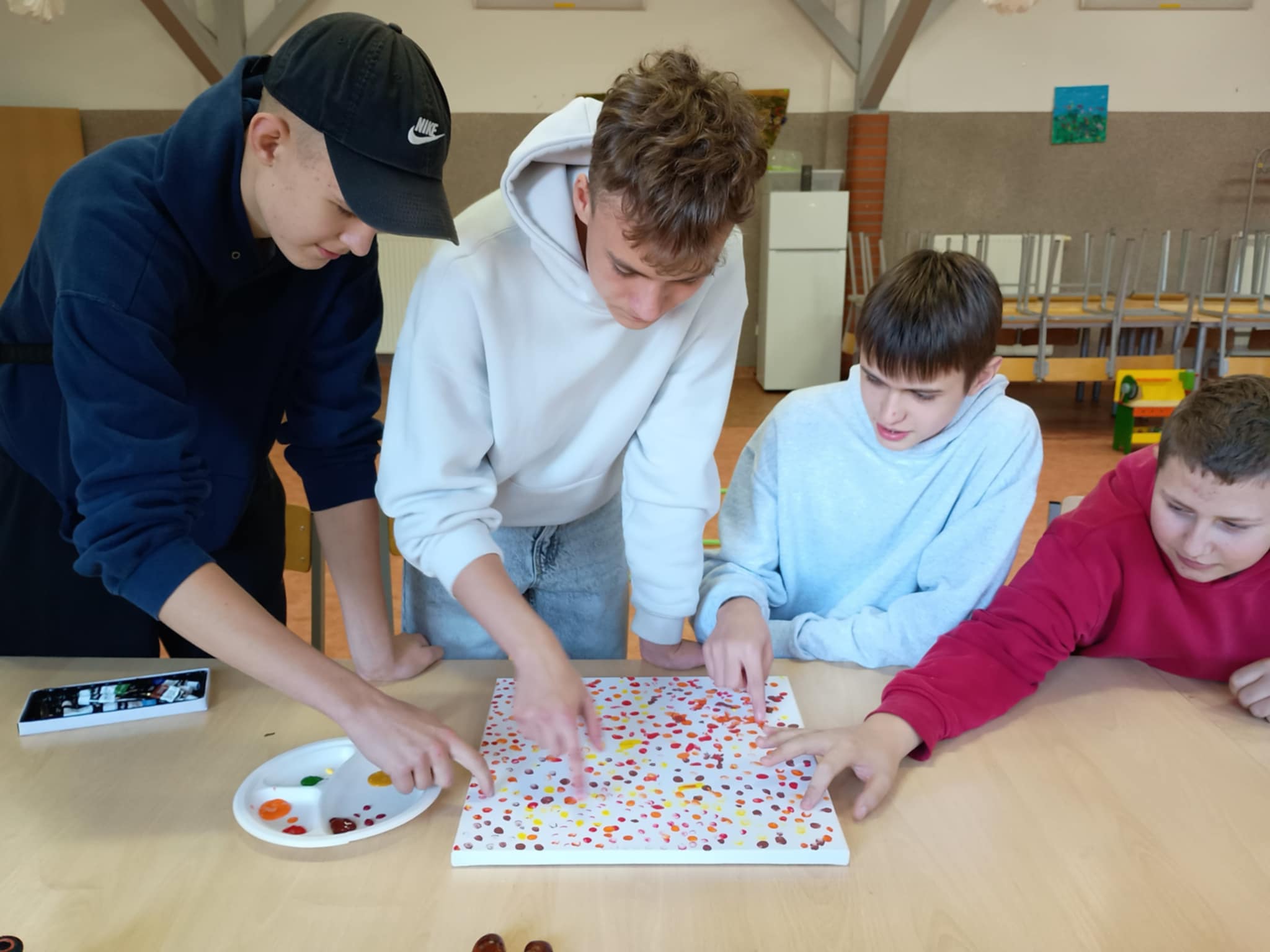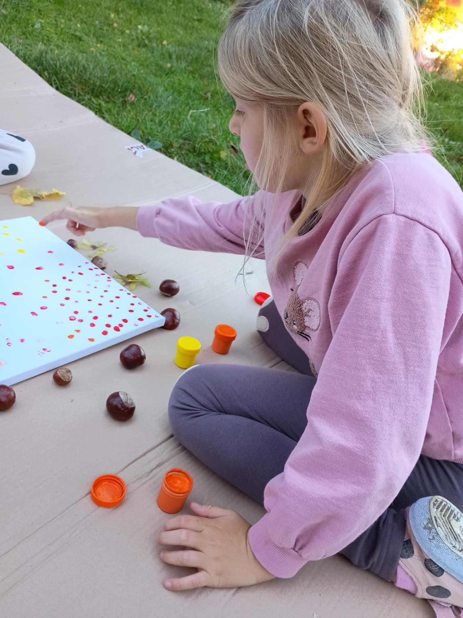 Zwieńczeniem naszych wrześniowych aktywności było wykonanie pięknego obrazu o tematyce jesiennej – malowanego palcami. Praca ta nie tylko rozwijała naszą kreatywność, ale też była okazją do relaksu i wyrażenia siebie poprzez sztukę.