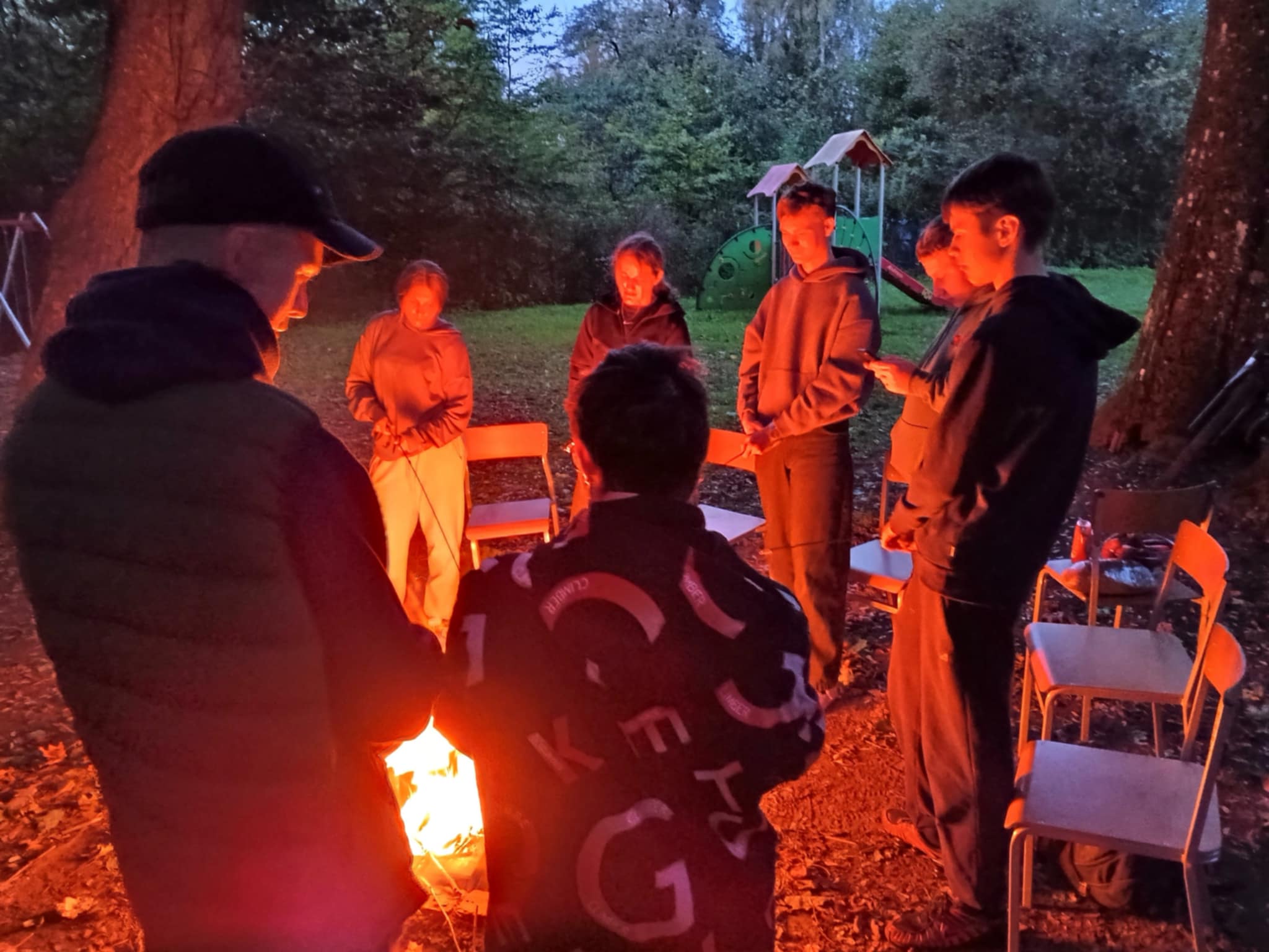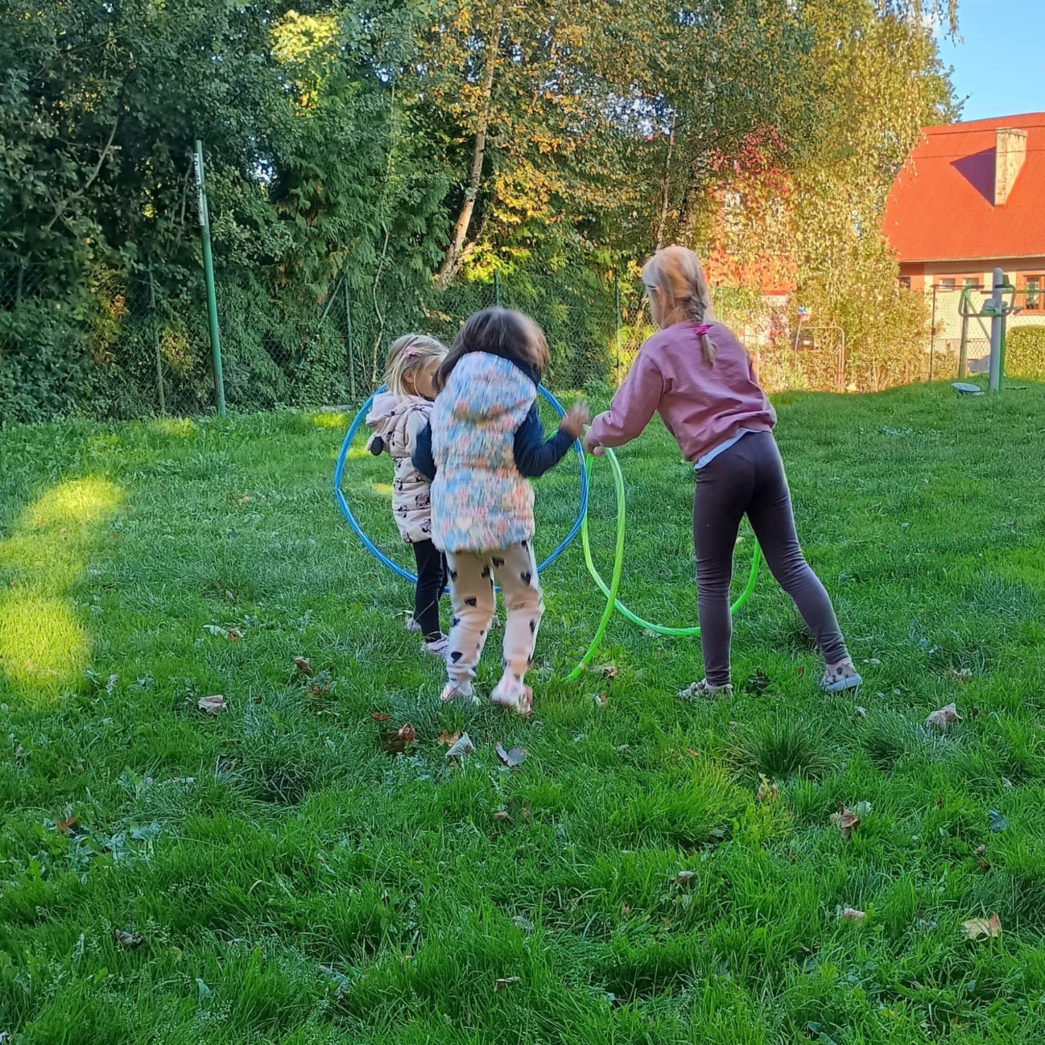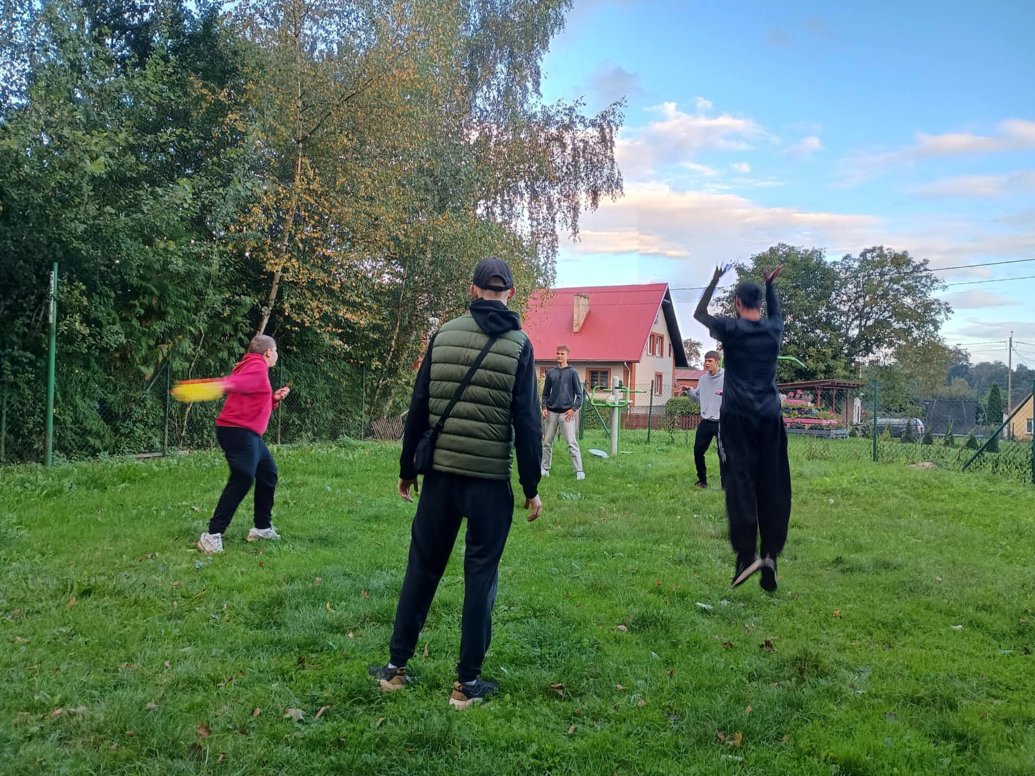 Nie zabrakło również aktywności na świeżym powietrzu. Wspólnie bawiliśmy się w klasyczne gry i zabawy, takie jak zbijak, berek „liściowy” czy chowanego. Podczas spacerów i wędrówek szukaliśmy oznak nadchodzącej jesieni, ucząc się obserwacji przyrody i współdziałania w grupie. Gdy dopadał nas głód – w kreatywny sposób łączyliśmy naukę z zabawą, przygotowując własnoręcznie pyszne gofry.