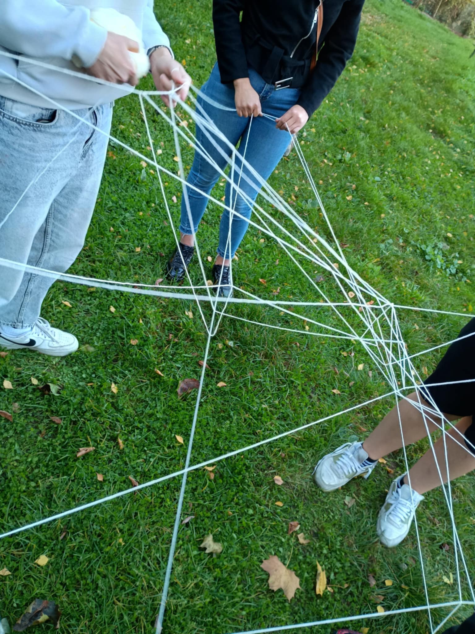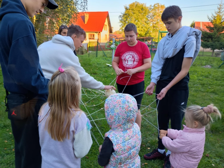 Wśród zajęć edukacyjnych znalazła się gra „Piłka kultury”, która pozwoliła nam poćwiczyć kulturę osobistą, grzeczność, poprawne formułowanie zdań, refleks oraz umiejętność współpracy. Inną wartościową zabawą była „Sieć znajomości” – wspólnie budowaliśmy pajęczynę relacji, ucząc się wzajemnego zaufania i wspólnego działania.