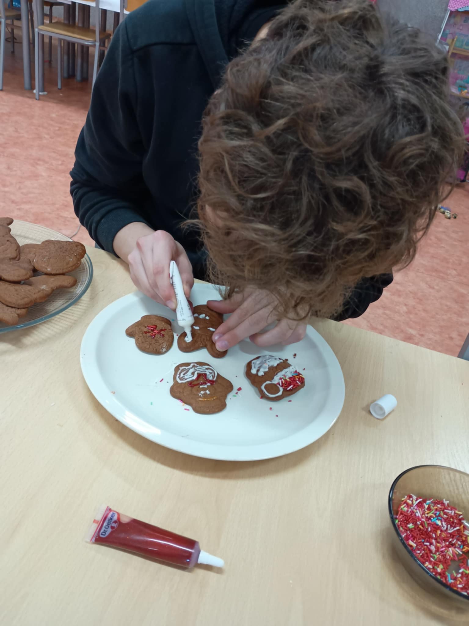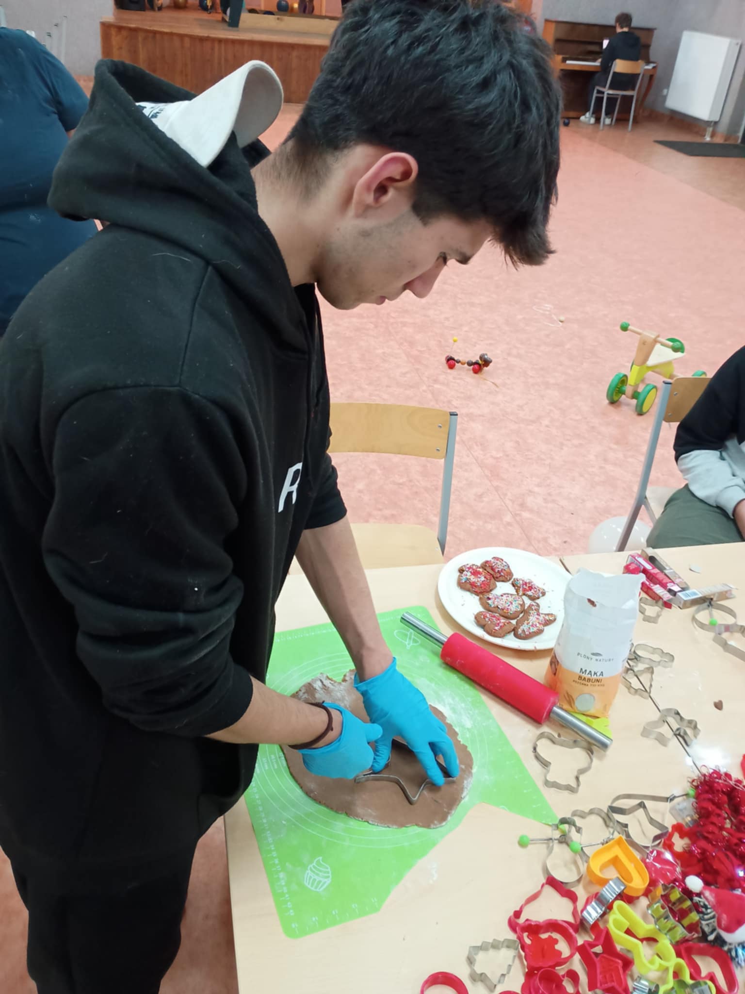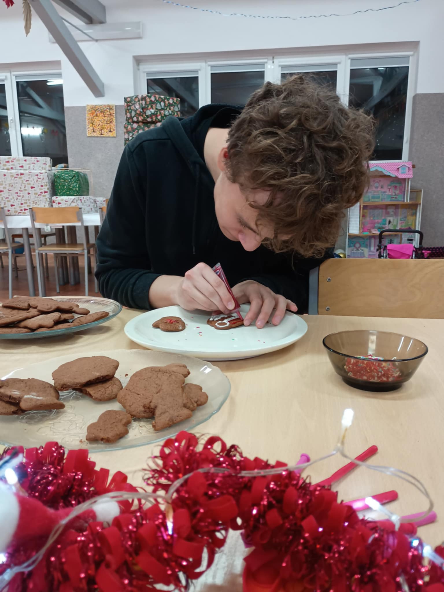 Ważnym elementem działań były zajęcia kulinarne, podczas których dzieci wspólnie piekły oraz dekorowały pierniczki. Aktywność ta sprzyjała integracji grupy, nauce współpracy, rozwijaniu samodzielności oraz kształtowaniu umiejętności praktycznych.