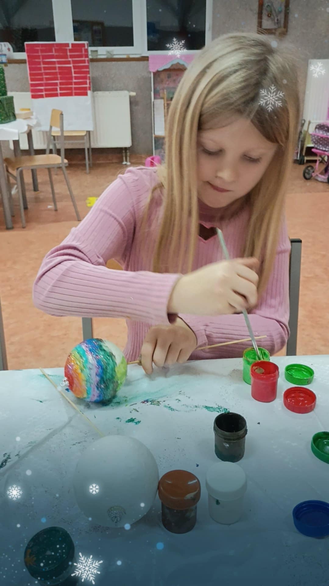 Przeprowadzono również zajęcia tematyczne poświęcone tradycjom i zwyczajom świątecznym. Podczas rozmów dzieci dzieliły się swoimi doświadczeniami związanymi z obchodzeniem świąt w rodzinach, omawiano znaczenie Świąt Bożego Narodzenia oraz wartości takie jak wspólnota, życzliwość i wzajemna pomoc.