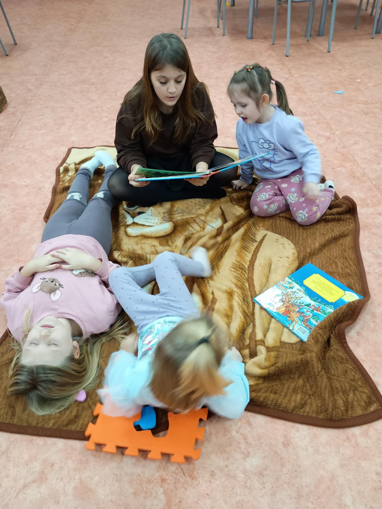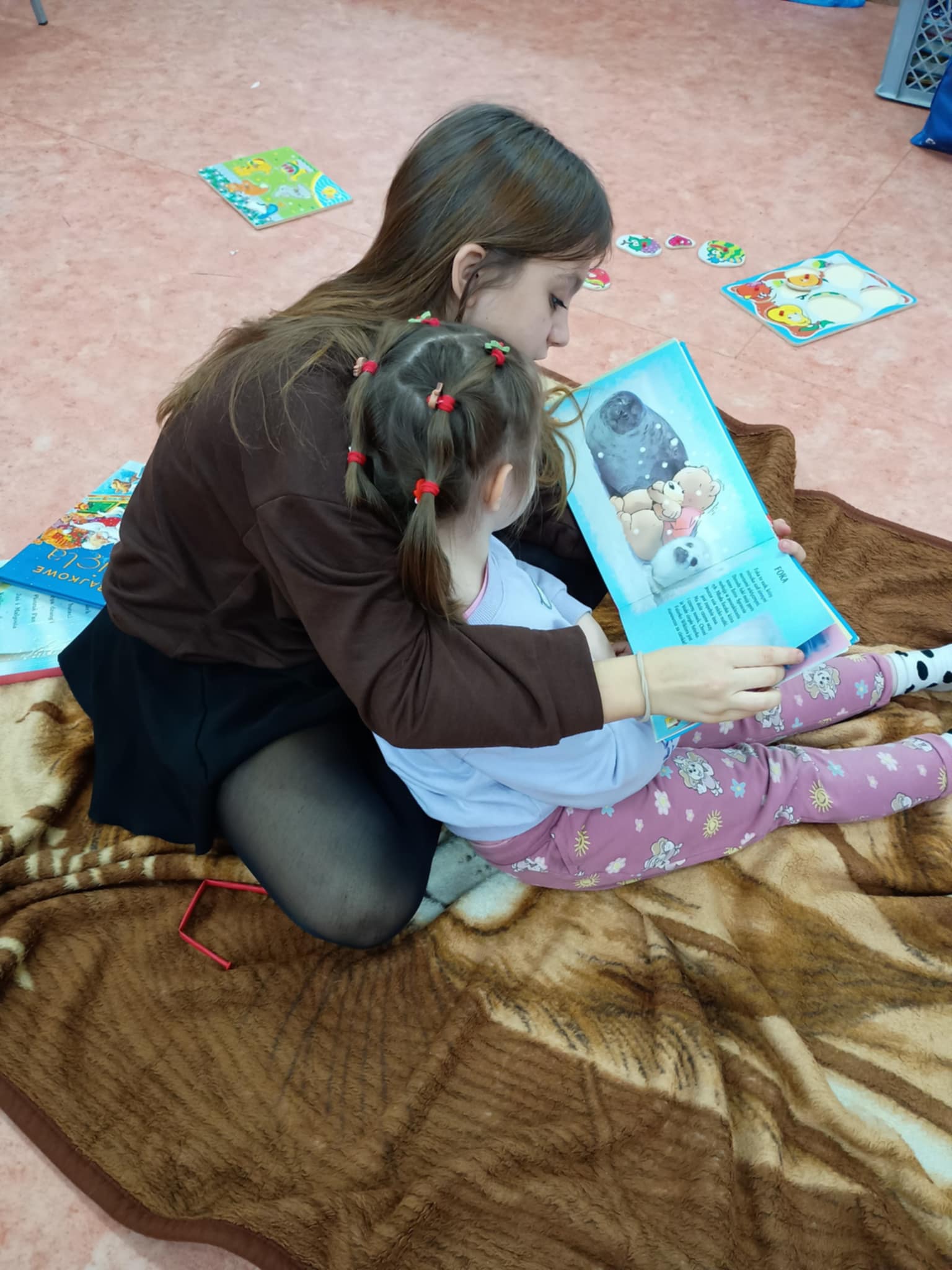 Starsze dzieci aktywnie włączyły się w opiekę nad młodszymi uczestnikami, czytając im książki o tematyce świątecznej, w tym opowiadania o Świętym Mikołaju. Działanie to wspierało rozwój kompetencji społecznych, empatii oraz odpowiedzialności za innych.